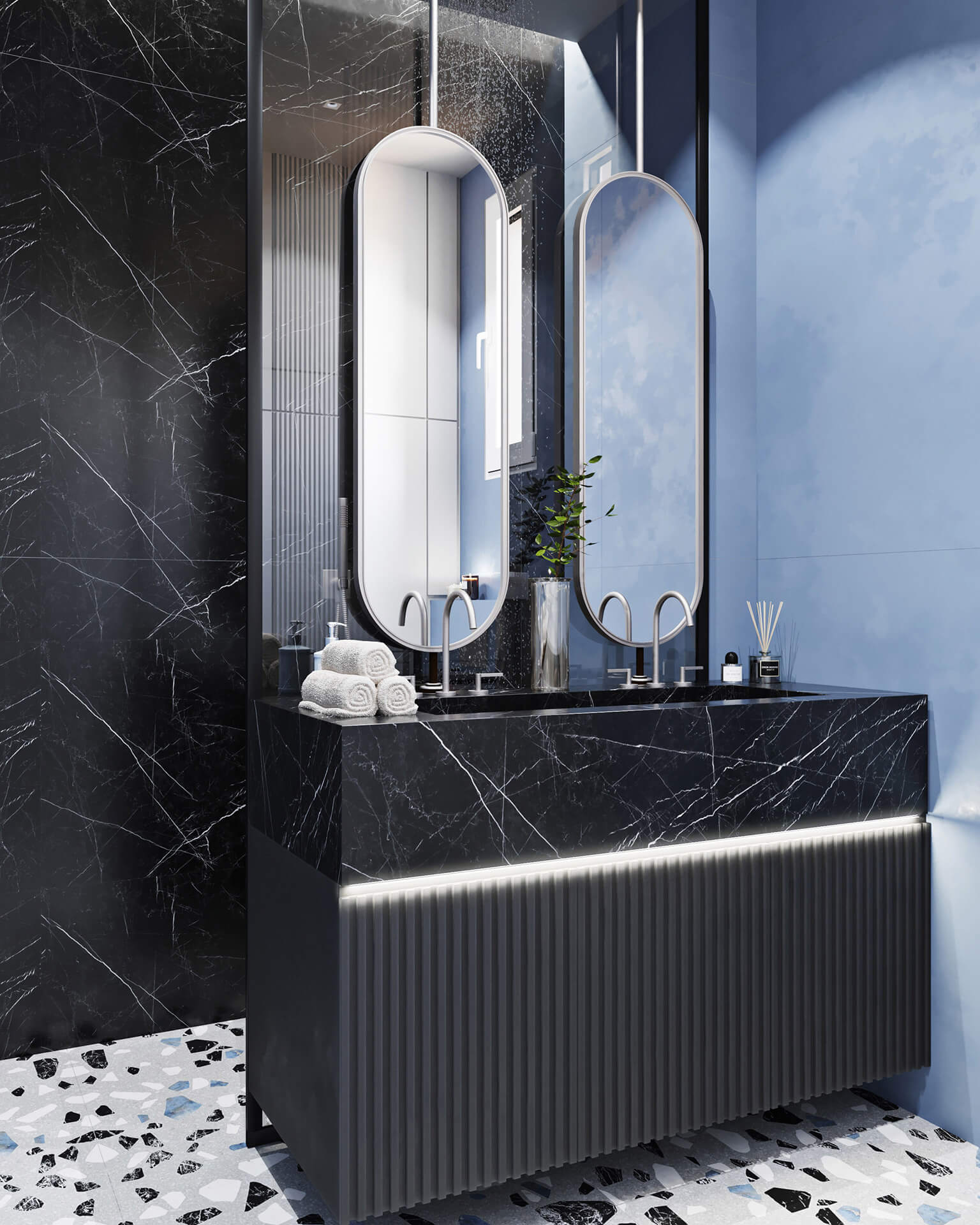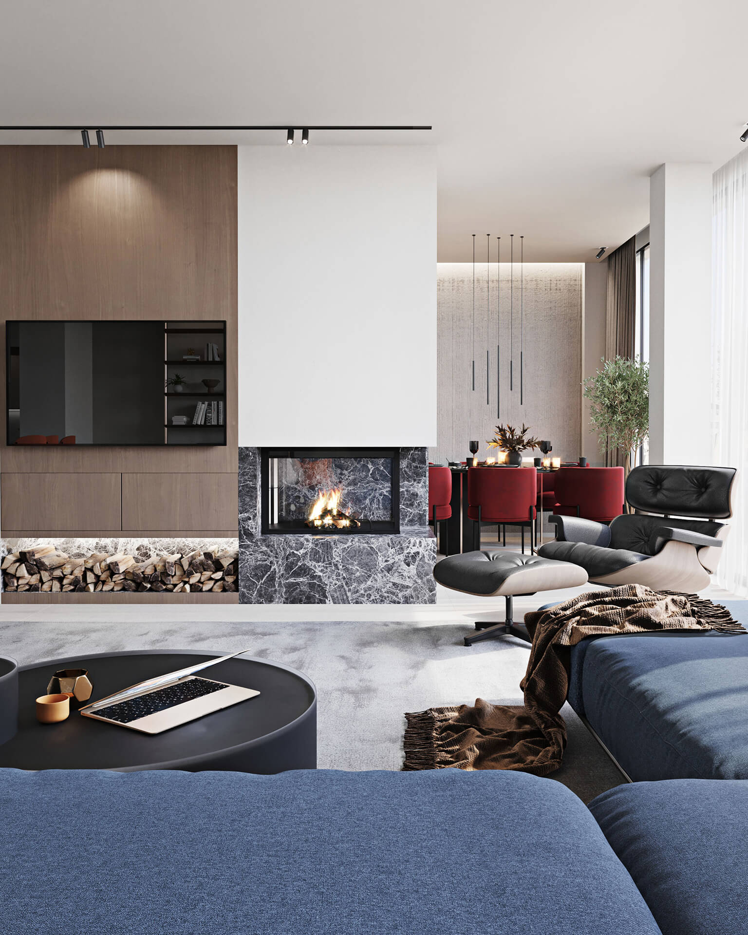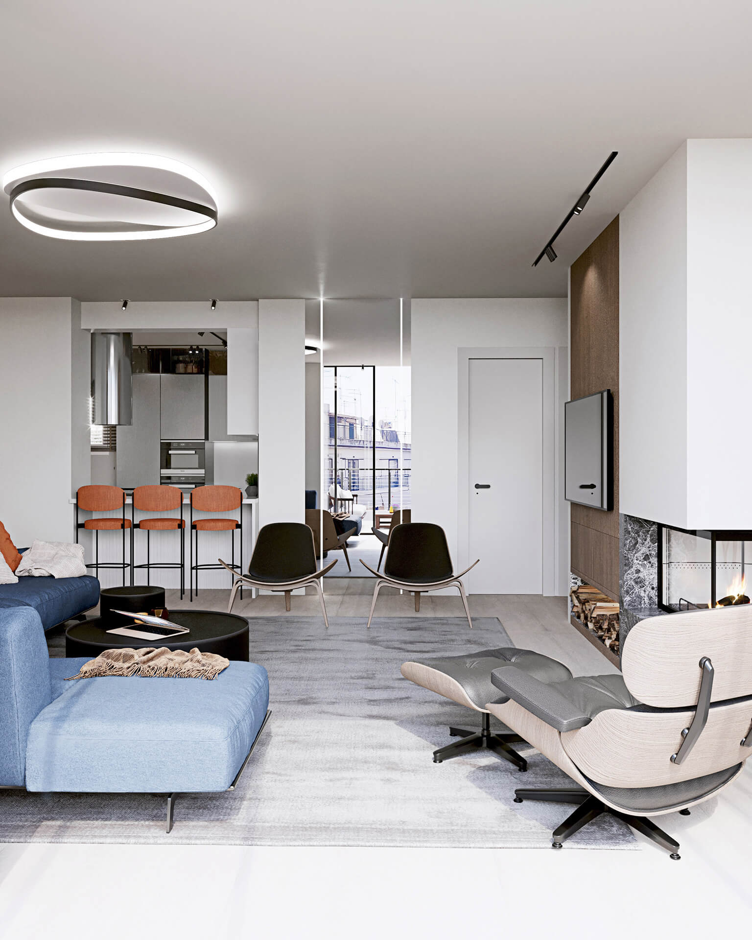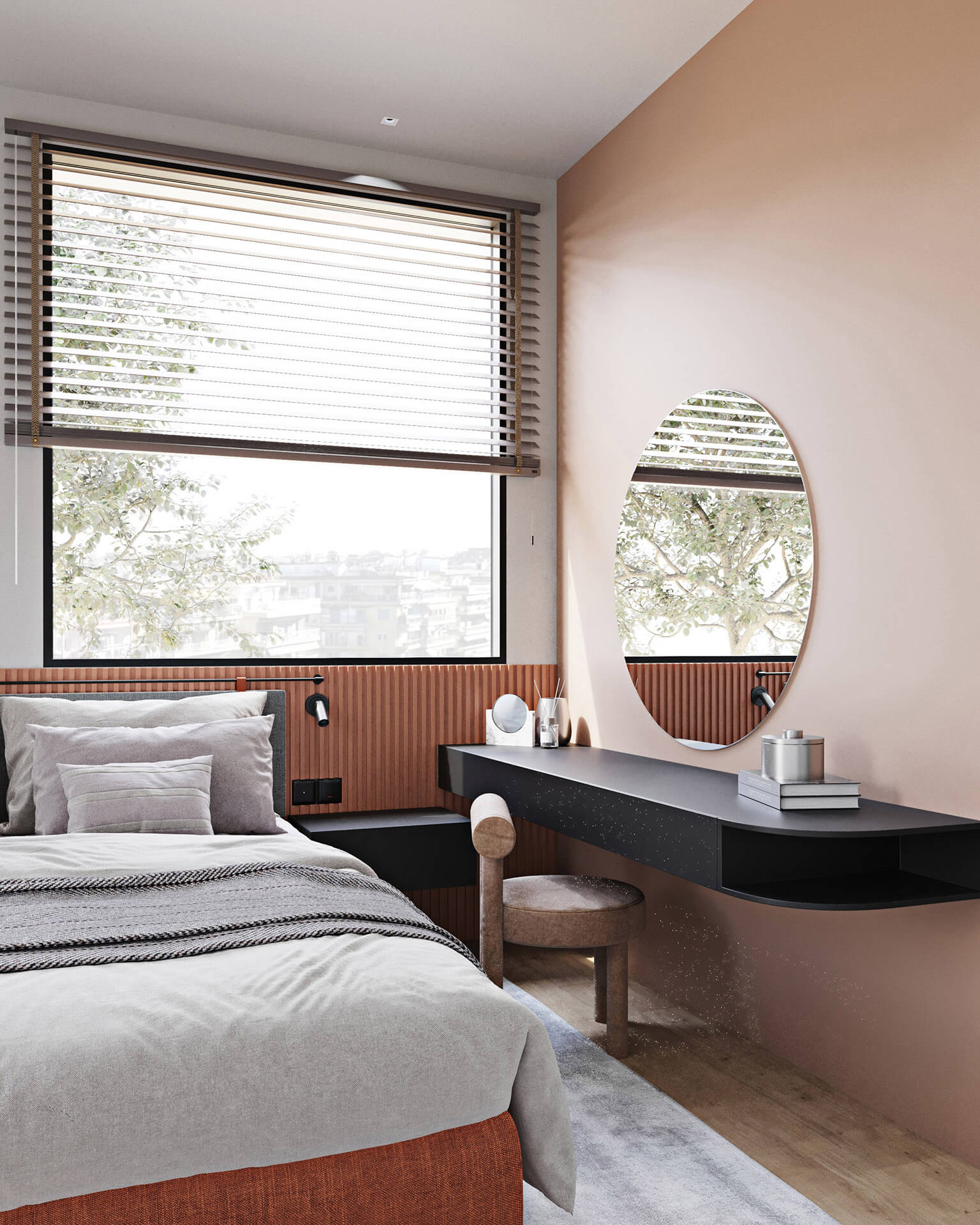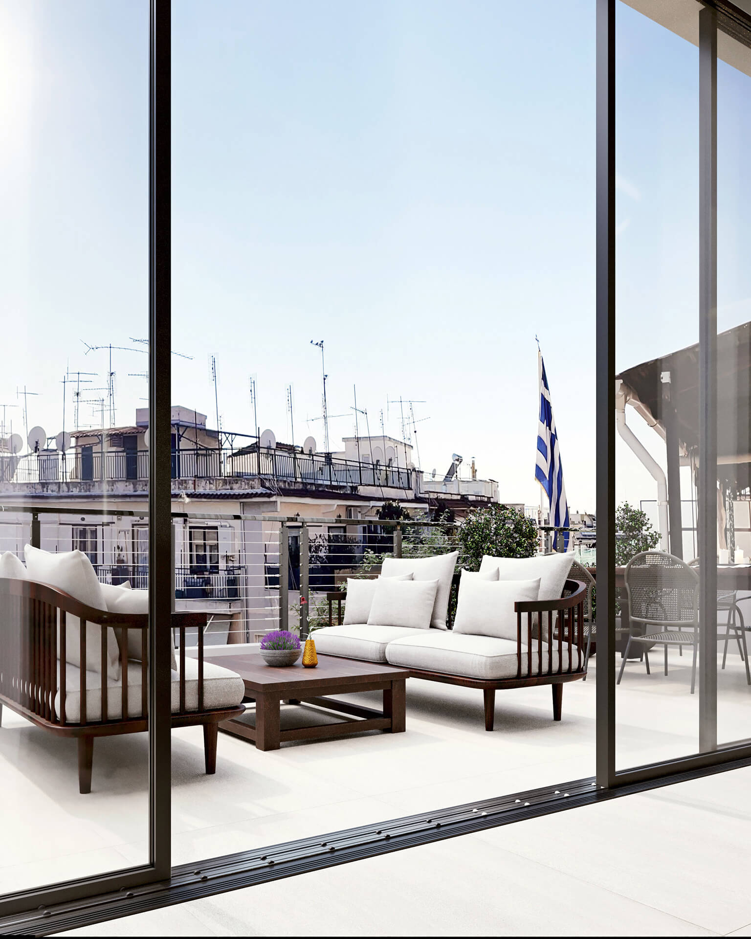 A top floor apartment in the city centre of Thessaloniki with a spacious, bright and airy living room. We equipped the flat with underfloor heating, a central, corner fire place and custom aluminium profile windows in order for the users of the property to be able to maintain internal temperatures with low levels of energy consumption. The sliding aluminium windows in the living room was the greatest challenge of the project, since the height of the window opening was at 3,00m and the total length at 9,00m. Being a top floor apartment, there was great risk with the wind pressure that could be created on specific weather conditions. Studying all available profiles with our suppliers and technical department we managed to install a secure window with easy, soft sliding mechanisms, eliminating any problem a window at this specifications would have.