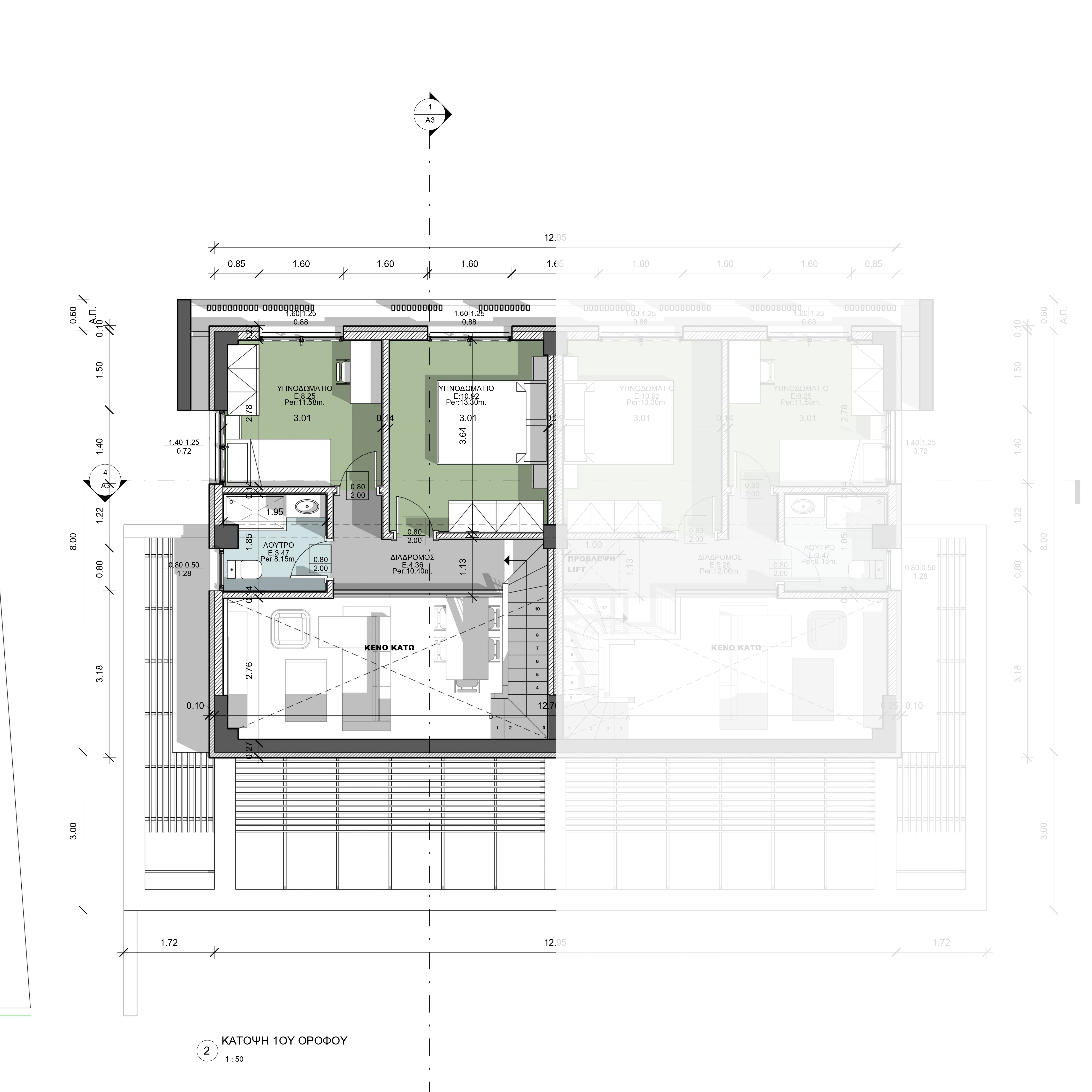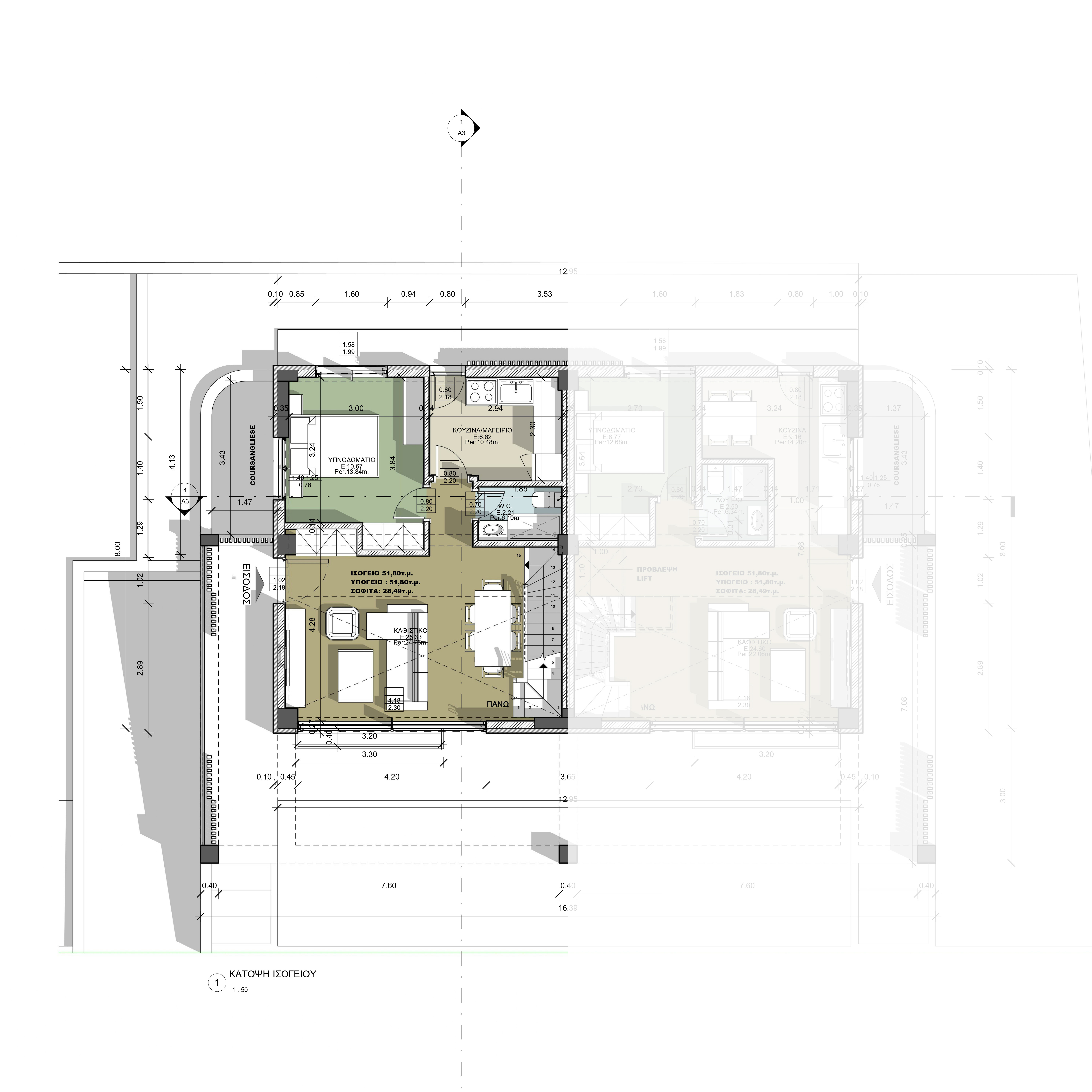An independent, three level maisonette (underground, ground, 1st floor) of 133 square meters with private garden of 125 square meters. The property consists of a playroom, a guest room, a storage room, a laundry room, a living room, kitchen area, three bedrooms, three bathrooms and outdoor, EV charging parking spot. The lower ground floor has a “cours anglaise” balcony for the guest room and natural lighting and airing windows for the playroom. A vibrant and full of light, high ceiling living room creates a modern and comfy area for relaxation. The house comes with underfloor heating, heat pump, PVT photovoltaic panels for energy production and is equipped with a hybrid system for maximum efficiency. This project is the only A++ energy class residential building in Thessaloniki.