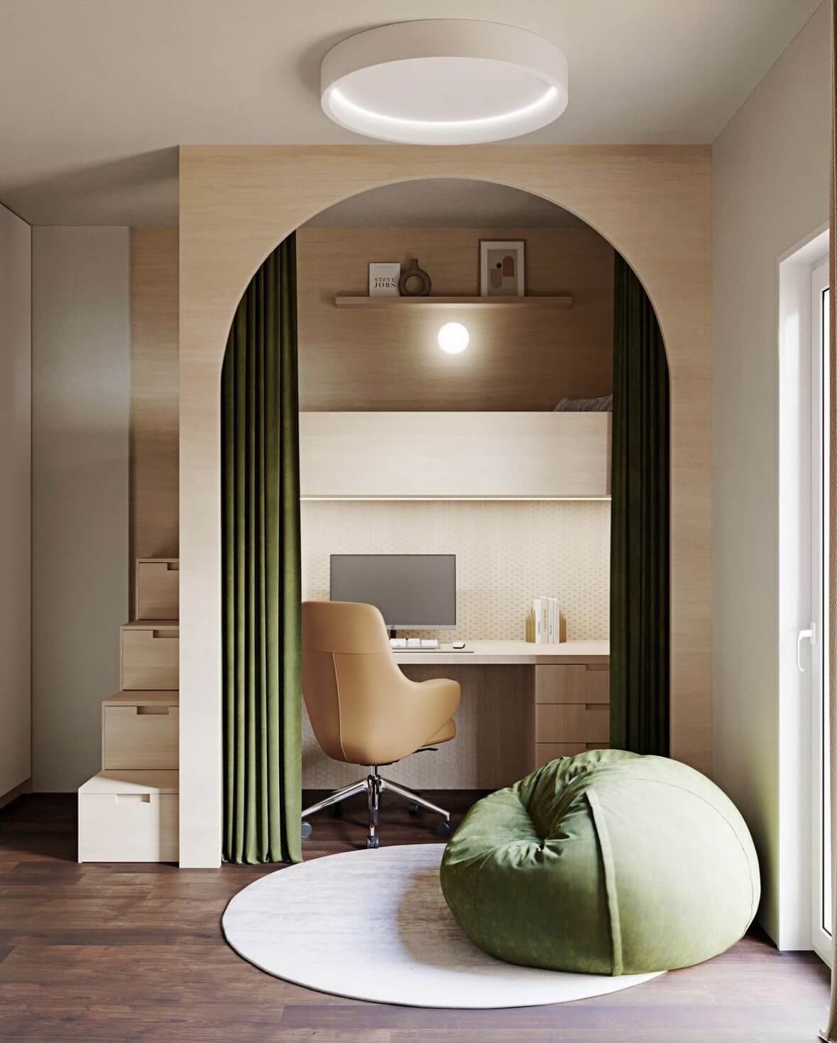 We were asked to design and produce a guest, double bedroom with an office space and some storage spaces. We managed to accommodate all, in an all-in-one, good looking and functional furniture piece, leaving space for sleeping, studying and also storing your essentials for your stay.